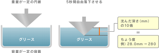 しかし、グリースは半固体状であるため、それらの単位系で評価する事ができません。